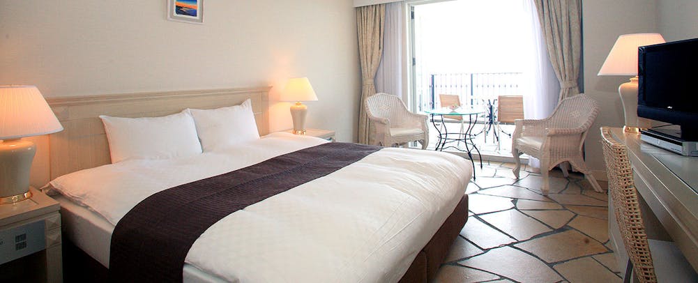 全室オーシャンビューのお部屋は最高の癒しです。南フランスプロヴァンス地方で生まれ、自然環境に深い思いやりを抱き、良質な天然植物性素材から作られる「ロクシタン」。そんな地球に優しいアメニティを葉山ホテル音羽ノ森では使用しております。広いなバルコニーにはサマーベッドが備えられています。朝食は海を見ながら優雅に過ごせ、海風と波の音が時のたつのも忘れるぐらいゆっくりと過ごせます。