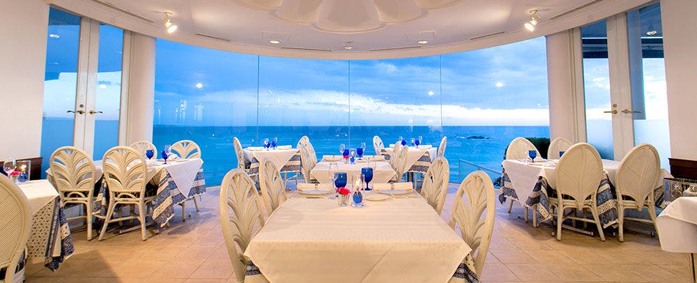 レストラン、カフェテラス、バーともに望む景色は南仏のリゾート地コートダジュールを彷彿させます。 お料理も目の前に広がる相模湾の海の幸、三浦半島の陸の幸をふんだんに使用しています。